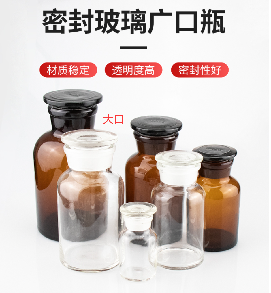 "玻璃棕色茶色白色大口广口小口细口磨砂口密封试剂瓶样品瓶带刻度玻璃瓶60 125 250 500 1000ml玻璃仪器"商品可能已被商家删除,您可查看其他相似商品!