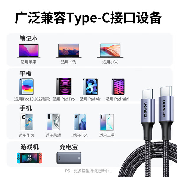 "绿联Type-C数据线双头PD100W快充线c to c充电线5A通用iPad Pro苹果macbook笔记本华为小米手机"商品可能已被商家删除,您可查看其他相似商品!