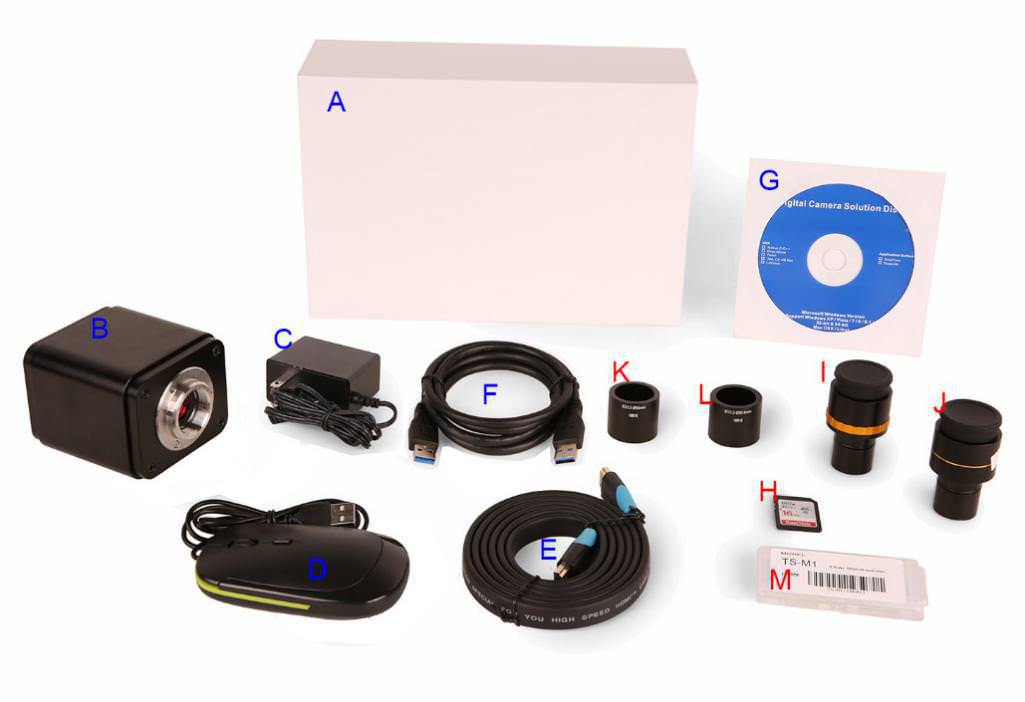 | 注意 : 对 K 和 L 选项, 请先确定你的相机型号(C 接口,显微镜相机或望远镜相机), 工程师会根据你的应用帮助你选定合适的显微镜或望远镜适配器; | |||