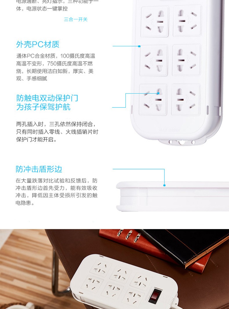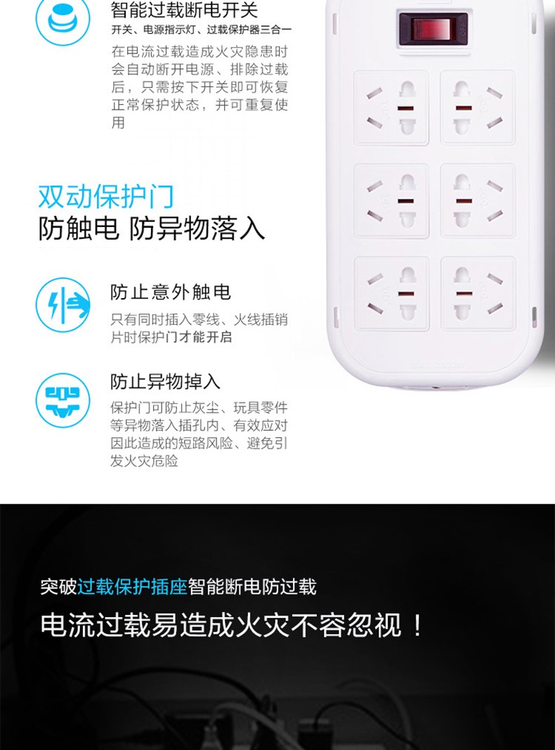 突破 防过载/总控双动保护门插排/民用多功能插座/拖线板