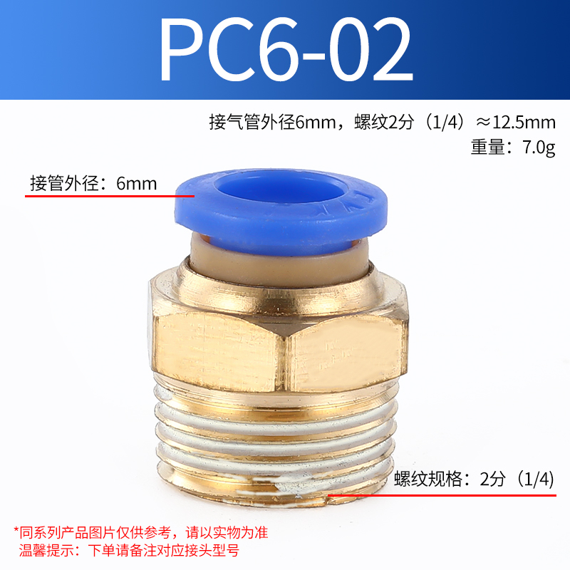 气动快速接头 气管接头 快插螺纹直通头 规格:PC6-02 材质:铜 20个/件