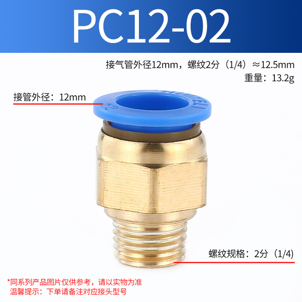气动快速接头 气管接头 快插螺纹直通头 规格:PC12-02 材质:铜 20个/件