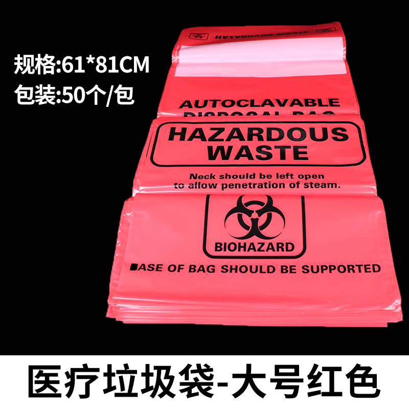 高温高压灭菌PP袋 生物危险品处理袋 医疗废弃物垃圾袋 规格:红色/大号 610*810mm 50只/包
