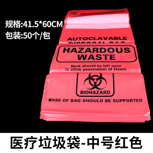 高温高压灭菌PP袋 生物危险品处理袋 医疗废弃物垃圾袋 规格:红色/中号 415*600mm 50只/包