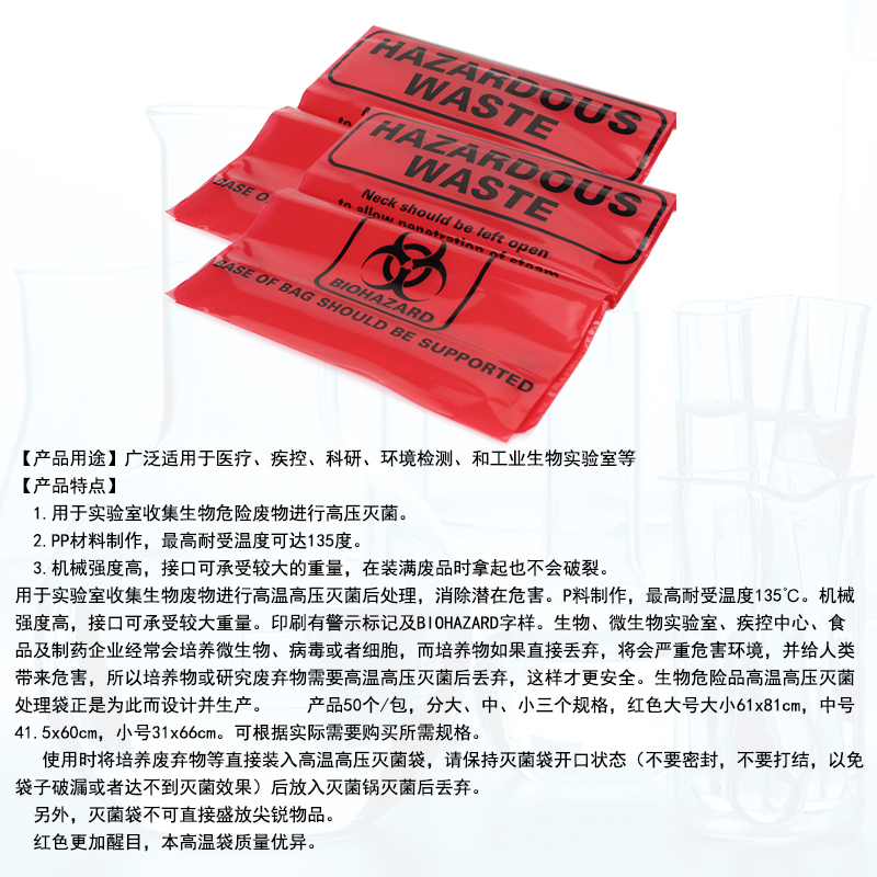 "高温高压灭菌PP袋 生物危险品处理袋 医疗废弃物垃圾袋"商品可能已被商家删除,您可查看其他相似商品!