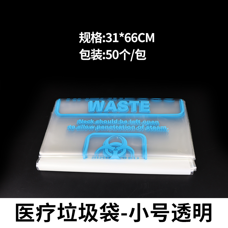 高温高压灭菌PP袋 生物危险品处理袋 医疗废弃物垃圾袋 规格:透明/小号 310*660mm 50只/包
