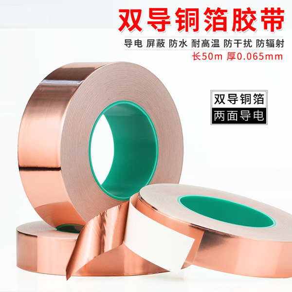 | 双导铜箔胶带 铜箔纸胶带 双面导电铜胶带 厚度0.065mm 尺寸15mm宽*50米长 |