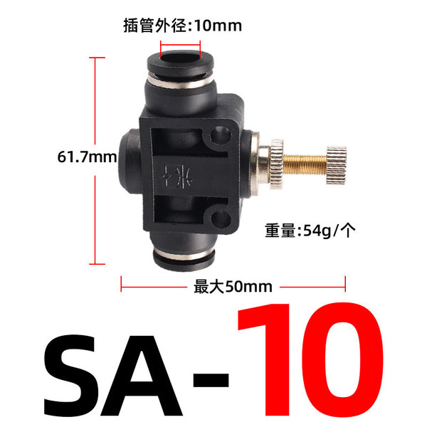 | 快速接头 调速开关 调节阀 节流阀 气动可调气缸 调速调节管道阀 黑色 SA-10 2个/件 |