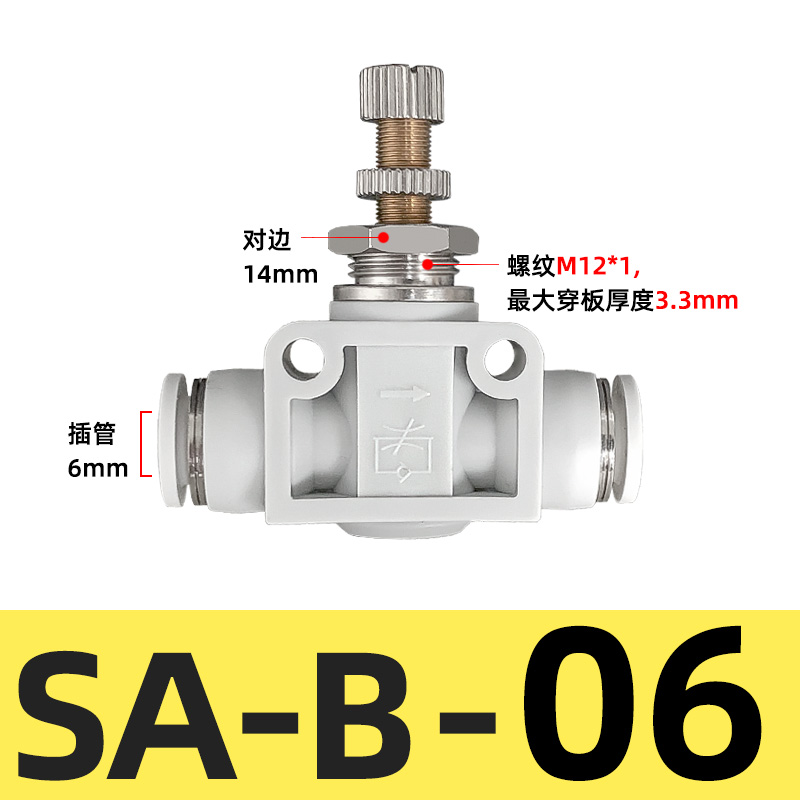 | 快速接头 调速开关 调节阀 节流阀 气动可调气缸 调速调节管道阀 白色隔板 SA-B-06 5个/件 |