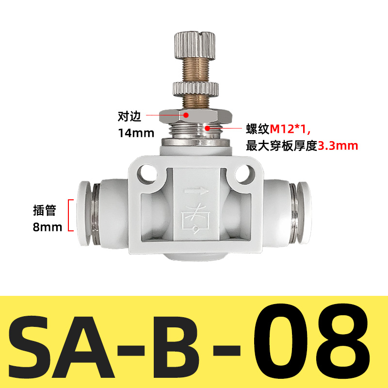 | 快速接头 调速开关 调节阀 节流阀 气动可调气缸 调速调节管道阀 白色隔板 SA-B-08 5个/件 |