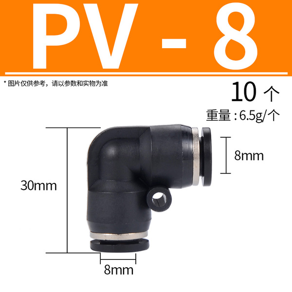| PV快速接头 PV气动气管接头 直角90度快接头 L型弯头塑料快插接头 黑色 PV-8 接外径8mm气管 10个/件 |