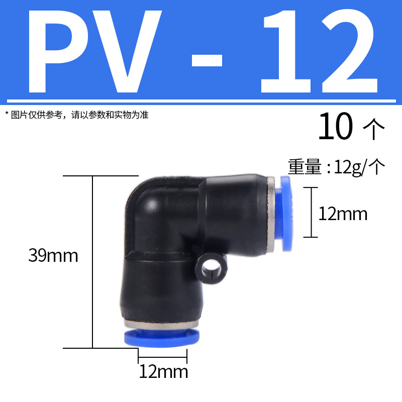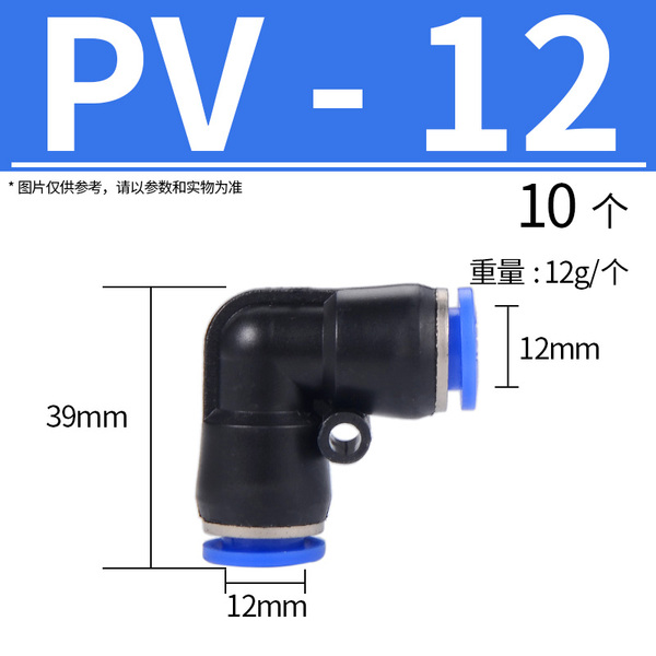 | PV快速接头 PV气动气管接头 直角90度快接头 L型弯头塑料快插接头 蓝色 PV-12 接外径12mm气管 10个/件 |