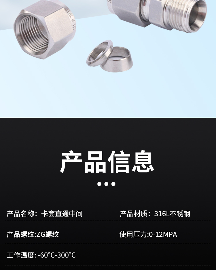 316不锈钢卡套直通中间: