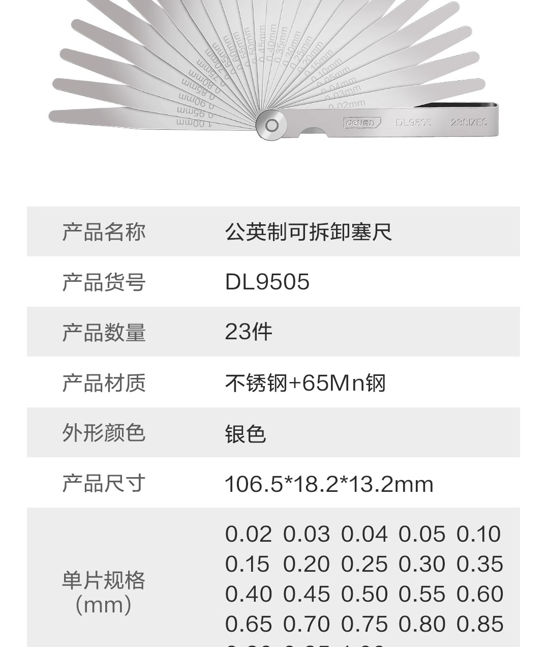 "得力工具塞尺不锈钢高精度套装气门间隙塞尺公英制单片可拆卸塞尺"商品可能已被商家删除,您可查看其他相似商品!